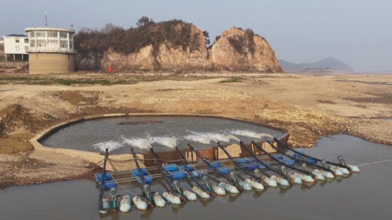 近期,江西晴多雨少,鄱阳湖自12月14日跌破8米极枯水位线后,持续走低。在江西省九江市都昌县,坐落鄱阳湖畔的观湖水厂发动“三级提水”作业,保证16万人口的饮用水安全。
