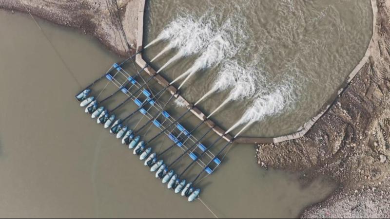 在鄱阳湖畔的都昌县观湖水厂取水口,记者看到,十台浮筒式抽水泵一字排开,开足马力,将鄱阳湖湖水抽至围堰内,保证观湖水厂的取水。“咱们早顶峰、晚顶峰、正午小顶峰满负荷运转,非顶峰期七到八台泵组运转,满意居民用水需求。”江西九江都昌润泉供水有限公司出产运转部部长王春华介绍说,现在选用的三级提水,便是把湖水从低处用水泵抽到水厂取水头部围堰,流入取水泵房调理池,再经取水泵组送往水厂预处理池,然后按流程做处理,每天提水在4.5万立方米以上。除此之外,他们还加大对饮用水源地巡查力度和水质检测频率,保证县城和周边城镇16万人口的饮用水安全。